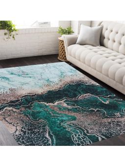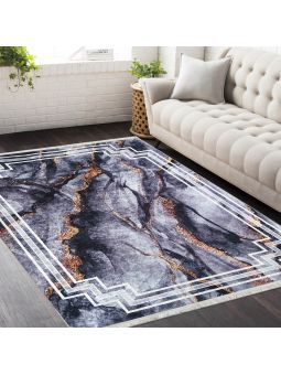Dywan wzór marmur w szarym kolorze stał się bestsellerem wśród pokryć podłogowych w tej kategorii. Pięknie prezentuje się w każdym wnętrzu, dodając mu nutę elegancji i luksusu. Dywan szary marmur w ciekawy sposób nawiązuje do oryginału, ale nie imituje go na siłę, dzięki czemu wygląda oryginalnie, ale nie kiczowato. Wspaniale komponuje się z wystrojem minimalistycznego wnętrza, dobrze wygląda również pokoju w stylu skandynawskim, w którym cenione są naturalne materiały. Dywan imitacja marmuru w tym kolorze warto umieścić w salonie lub sypialni. Obu tym wnętrzom doda blasku, ale nie będzie dominującym elementem wyposażenia. Niezłym pomysłem jest zestawianie dywanu wzór marmur z elementami dekoracyjnymi, np. figurkami lub stolikiem z naturalnego kamienia.