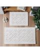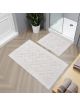 Starannie wykończone krawędzie podkreślają wysoką jakość produktu, a trwałe materiały gwarantują, że dywaniki zachowają estetyczny wygląd przez długi czas, nie tracąc formy ani koloru. Prostokątny kształt zestawu sprawia, że dywaniki łatwo dopasować do łazienek o różnych układach i rozmiarach. To doskonały wybór dla osób ceniących elegancję, funkcjonalność i ponadczasowy design w subtelnej, neutralnej kolorystyce.