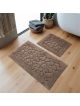 Dywaniki zdobi subtelny, wytłoczony wzór, który nadaje im elegancki i nowoczesny charakter. Brązowy kolor świetnie komponuje się z beżami, drewnem, bielą oraz innymi ciepłymi odcieniami w łazience, wprowadzając przytulną atmosferę. Starannie wykończone krawędzie oraz trwała bawełna gwarantują, że dywaniki zachowają swój wygląd i miękkość przez długi czas. Prostokątny kształt sprawia, że zestaw pasuje do łazienek o różnych rozmiarach i układach.