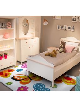 Piękne, niebieskie tło w dywanie z serii Bella doskonale eksponuje kolorowe, fantazyjne motylki, które idealnie sprawdzą się w każdym pokoju małej księżniczki. Powstał z najwyższej jakości materiałów, które są odporne na zabrudzenia oraz odbarwienia, a dodatkowo są całkowicie bezpieczne dla kontaktów z dziećmi i niemowlętami. Dywan dostępny jest w wielu standardowych oraz niestandardowych wymiarach, dzięki którym z łatwością można dopasować go do pokoju. Posiada również ceniony certyfikat zgodności nr. 027/2023.