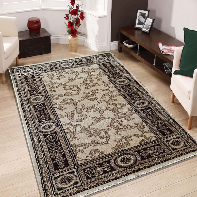 Kremowy dywan z najnowszej kolekcji Exclusive powstał z myślą o osobach, które nade wszystko cenią sobie wysoką jakość wykonania połączoną z bogatym, luksusowym wzornictwem. Kremowe, delikatne tło idealnie podkreśla wykorzystany wzór, a ekskluzywne obramowanie nadaje elegancji i niepowtarzalnego designu. Dywan sprawdzi się we wszystkich rodzajach wnętrz, w których dominuje podobna stylistyka. W naszym sklepie posiadamy najczęściej wybierane wymiary, które ułatwiają dopasowanie do dowolnie wybranych pomieszczeń.
