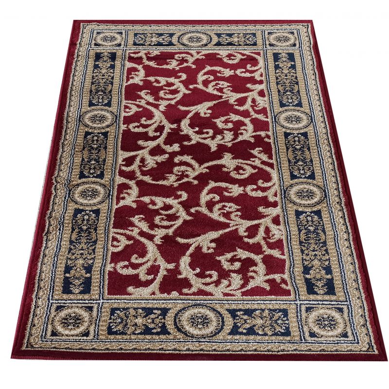 Tradycyjny dywan w kolorze czerwonym, zdobiony bogatym i skomplikowanym wzorem roślinnym. Wzornictwo czerpie wszystko to, co najlepsze z klasycznych, tradycyjnych form wzornictwa dywanów. Dywan ekskluzywny, idealny do pomieszczeń bogatych, luksusowych i urządzonych z wielkim przepychem i dbałością o każdy szczegół. Idealnie odnajdzie się w salonach i sypialniach.