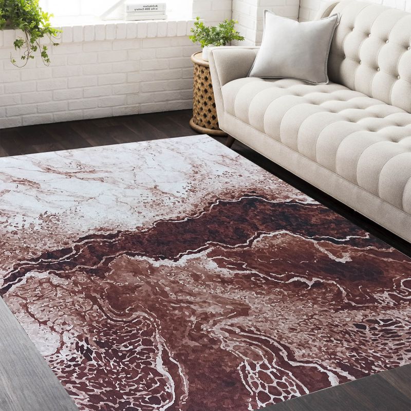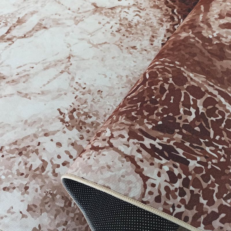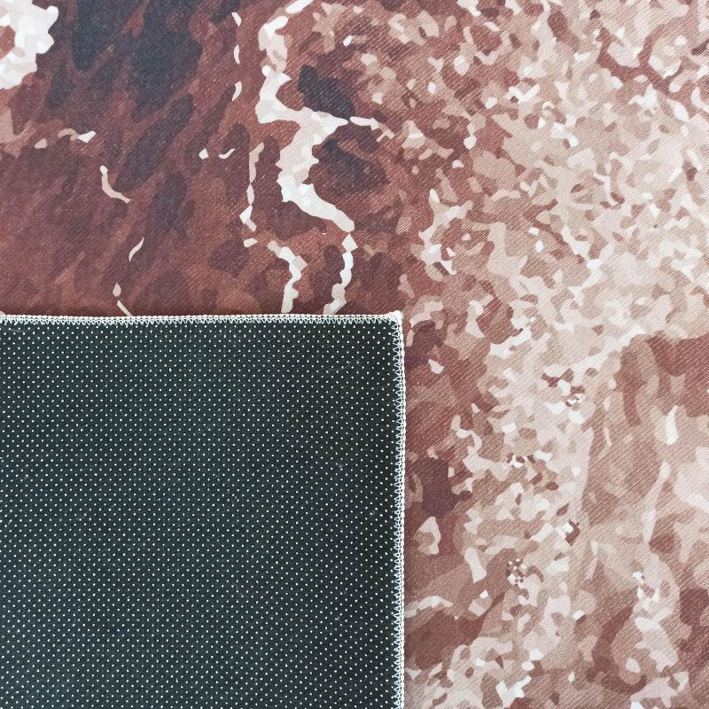 Dywan z kolekcji Horeca New w kolorze brązowym to zdecydowanie HIT! Nowoczesne, nietuzinkowe wzornictwo odnajdzie się w każdym nowocześnie urządzonym salonie, sypialni, przedpokoju czy nawet kuchni. Dywan ten charakteryzuje się niezwykłą łatwością czyszczenia - wystarczy wyprać go w pralce w 30 stopniach (nie odkształci się, ani nie odbarwi). Spód dywanu został pokryty antypoślizgową powłoką, dzięki czemu nie będzie się ślizgał ani przesuwał. Ze względów na jego grubość, dywan może posłużyć jako makata na ścianę lub bieżnik na stół. Dywan nie posiada tradycyjnego runa dywanowego - wykonany został metodą nadruku cyfrowego.