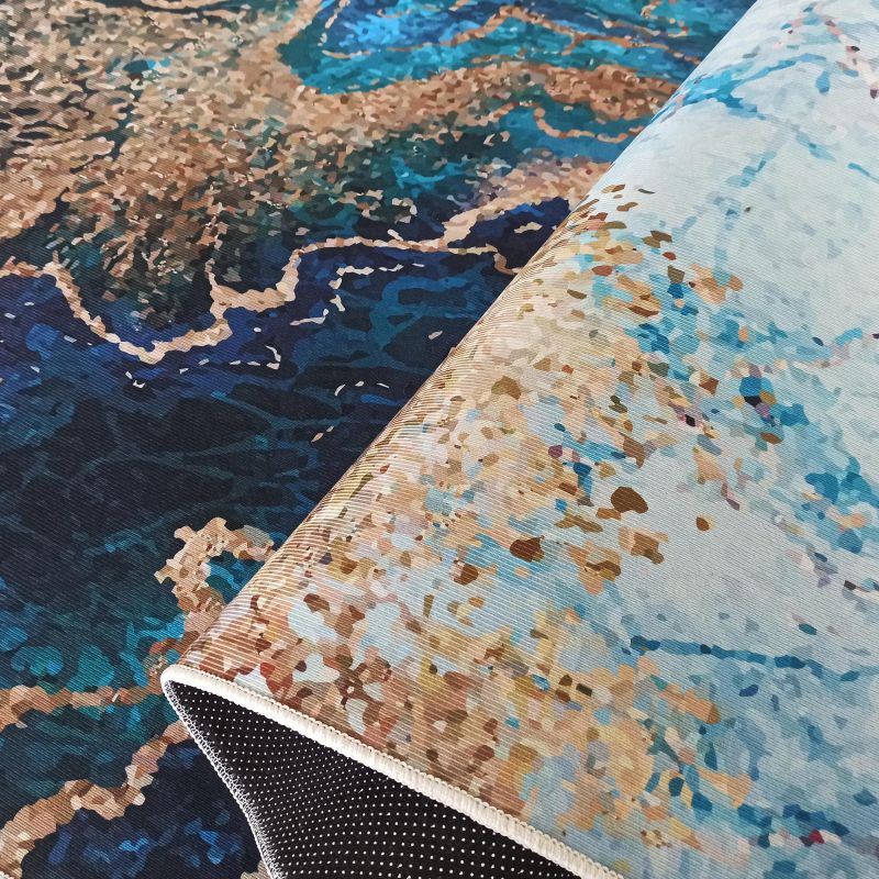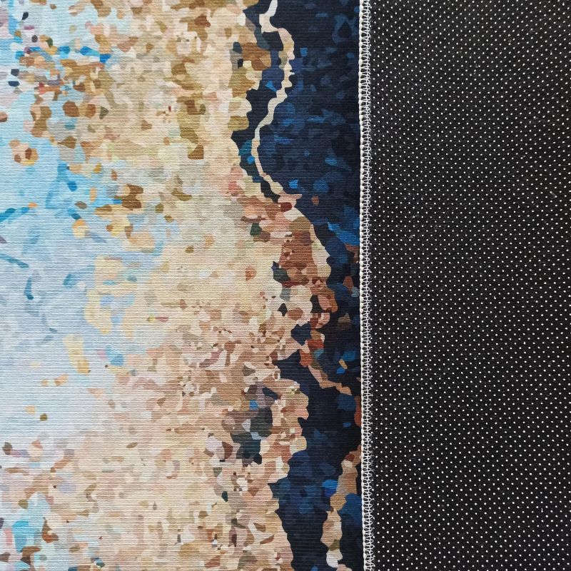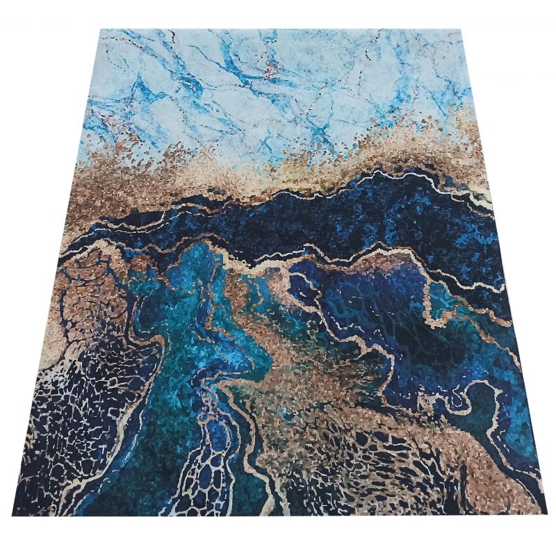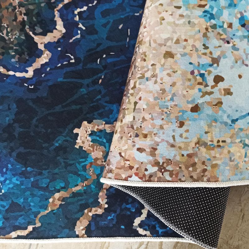 Niebiesko - złoty dywan z kolekcji Horeca New to dywan wprost idealny do pomieszczeń, gdzie dużo się dzieje i jest zwiększone natężenie ruchu. Nie tylko urzeka swoim pięknem, ale i również praktycznością. Spód dywanu został pokryty antypoślizgową powłoką, dzięki czemu nie będzie się ślizgał ani przesuwał. Największą zaletą dywanów z tej kolekcji jest odporność na zabrudzenia oraz łatwość czyszczenia - można prać w pralce w 30 stopniach. Ze względów na jego grubość, dywan może posłużyć jako makata na ścianę lub bieżnik na stół. Wyjątkowy dywan ,który udekoruje pomieszczenie zarówno w stylu klasycznym jak i nowoczesnym.
