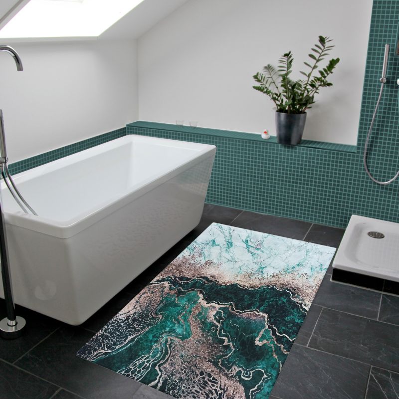 Zielony dywan z kolekcji Horeca New to dywan wprost idealny do pomieszczeń, gdzie dużo się dzieje i jest zwiększone natężenie ruchu. Nie tylko urzeka swoim pięknem, ale i również praktycznością. Spód dywanu został pokryty antypoślizgową powłoką, dzięki czemu nie będzie się ślizgał ani przesuwał. Największą zaletą dywanów z tej kolekcji jest odporność na zabrudzenia oraz łatwość czyszczenia - można prać w pralce w 30 stopniach. Nie odkształcą się oraz nie zniszczą. Stanowią doskonałą propozycję do kuchni, łazienki, przedpokoju czy każdego pomieszczenia, gdzie jest podłoga z płytek. Ze względów na jego grubość, dywan może posłużyć jako makata na ścianę lub bieżnik na stół.  Jeśli cenisz sobie piękno i funkcjonalność to ta kolekcja z pewnością jest dla Ciebie. Piękne kolory i przyciągające wzrok wzory na pewno Cię oczarują. Udekorują pomieszczenie zarówno w stylu klasycznym jak i nowoczesnym.