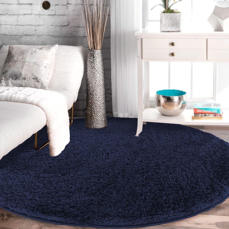 Dywan Kamel - typu Shaggy nowoczesny, mięciutki - granatowy- koło