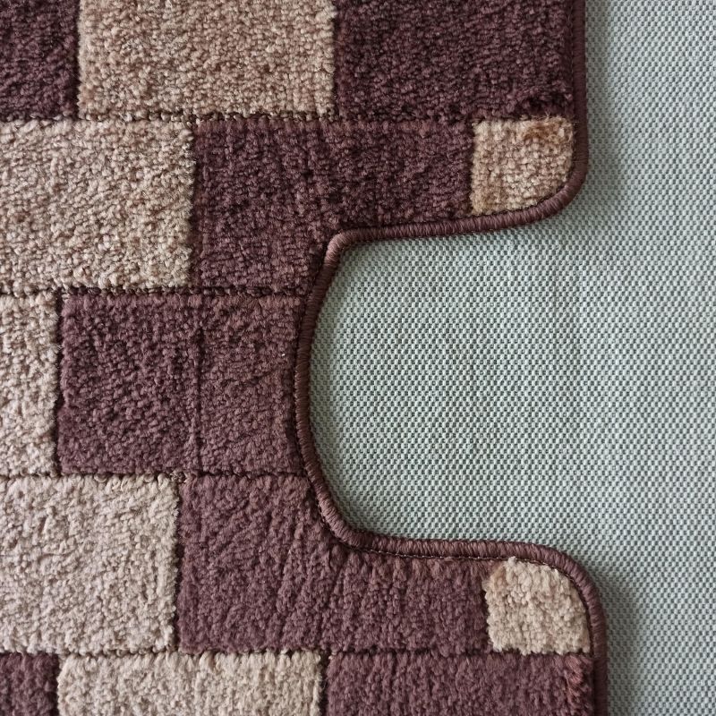 Geometryczny wzór ulokowany na brązowym tle doda ciepła każdej łazience. Komplet łazienkowy Montana nie tylko będzie piękną ozdobą, ale również jest niezwykle praktyczny. Ta seria dywaników została wyprodukowana z myślą o tych, którzy oczekują od dywanów czegoś więcej. Antypoślizgowy spód gwarantuje bezpieczeństwo pod stopami. Produkt został wykonany z wysokiej jakości materiałów, który jest odporny na wilgoć oraz odbarwienia. Dywaniki są niezwykle miękkie i przyjemne w dotyku. Utrzymanie ich w czystości jest bajecznie proste - wystarczy wyprać je w pralce w temperaturze 30 stopni. W skład kompletu wchodzą dwa dywaniki: 60 cm x 100 cm i 50 cm x 60 cm z wycięciem pod toaletę.