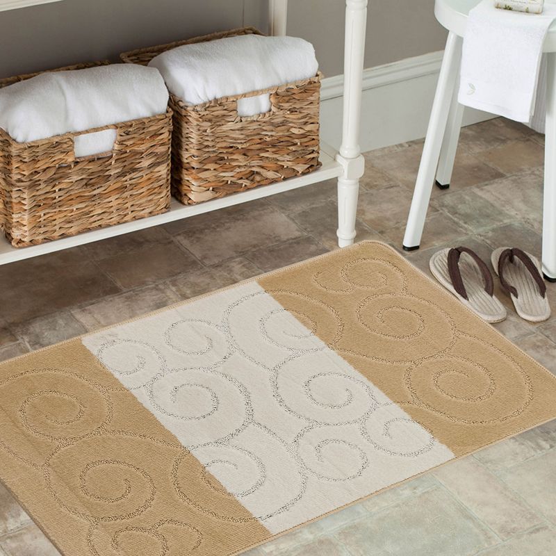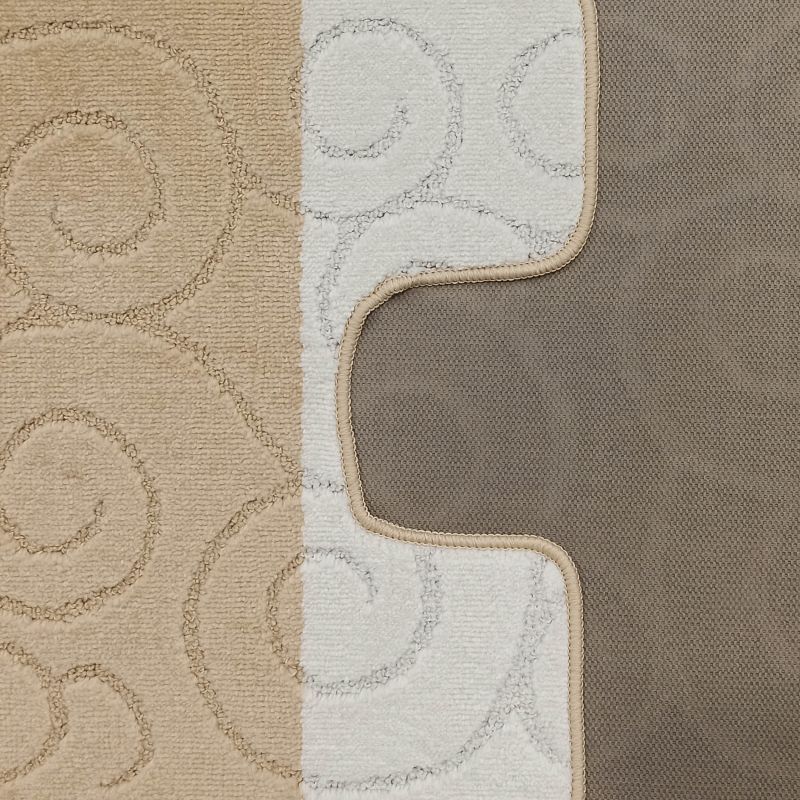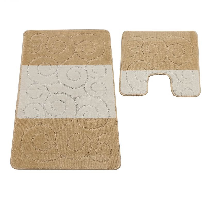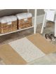 Beżowe komplety łazienkowe z kolekcji Montana dodadzą ciepła i przytulnej atmosfery do Waszej łazienki. Dywaniki zostały udekorowane geometrycznym, etnicznym wzorem, który zafascynuje każdego. Zostały wykonane z miękkiego materiału polipropylenowego, który cechuje się odpornością na ścieranie i na wszelkiego rodzaju uszkodzenia. Wysoka jakość materiałów sprawia, że dywany można prać w pralce w temperaturze 30 stopni, co jest niezwykłym ułatwieniem przy utrzymaniu ich w czystości. Maty są bardzo praktyczne, również dzięki antypoślizgowej powłoce. Na komplet składają się dwa dywaniki łazienkowe, w rozmiarze: 60 cm x 100 cm i 50 cm x 60 cm, gdzie mniejszy posiada specjalne wycięcie pod toaletę.