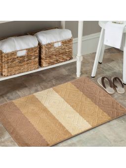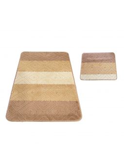 Beżowe komplety łazienkowe z kolekcji Montana dodadzą ciepła i przytulnej atmosfery do Waszej łazienki. Dywaniki zostały udekorowane drobnym, geometrycznym wzorem romby, który zafascynuje każdego. Zostały wykonane z miękkiego materiału polipropylenowego, który cechuje się odpornością na ścieranie i na wszelkiego rodzaju uszkodzenia. Wysoka jakość materiałów sprawia, że dywany można prać w pralce w temperaturze 30 stopni, co jest niezwykłym ułatwieniem przy utrzymaniu ich w czystości. Maty są bardzo praktyczne, również dzięki antypoślizgowej powłoce. Na komplet składają się dwa dywaniki łazienkowe, w rozmiarze: 50 cm x 80 cm i 40 cm x 50 cm, gdzie mniejszy posiada specjalne wycięcie pod toaletę. Dostępny również bez wycięcia pod toaletę.