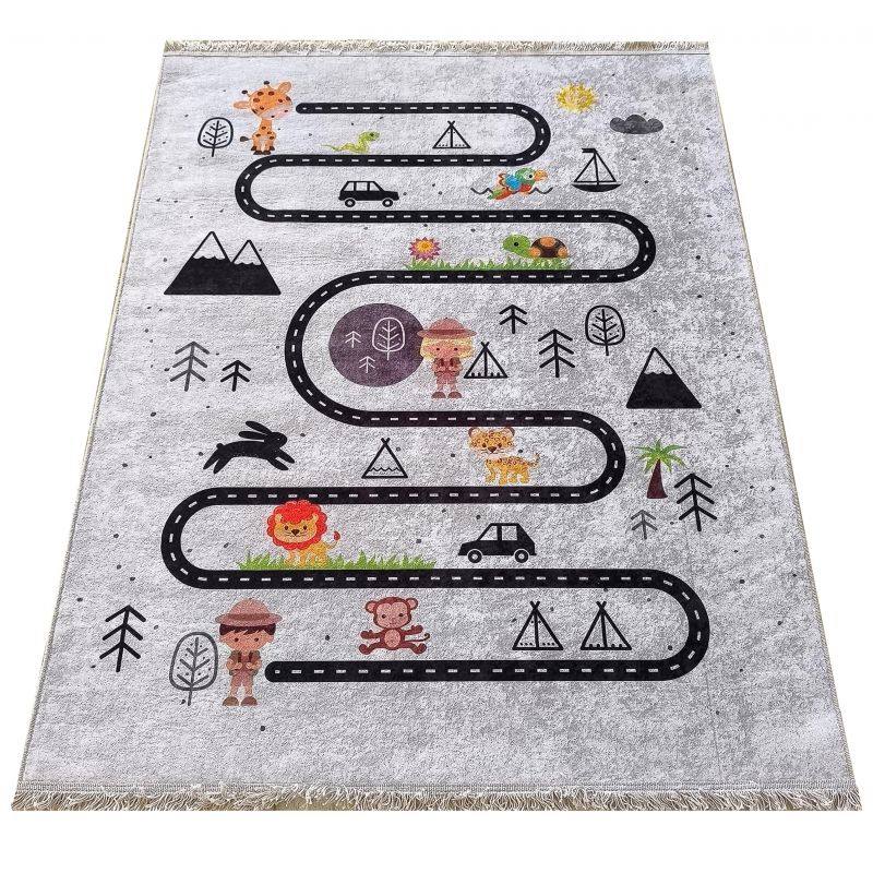 Dywan New Bambino 139 zabierze Twoje dziecko w pełną przygód podróż po kolorowej drodze pełnej fantazji. Wykonany w 100% z poliestru metodą nadruku cyfrowego, wyróżnia się intensywną kolorystyką i wysoką jakością wykonania, która przetrwa wiele godzin zabawy.